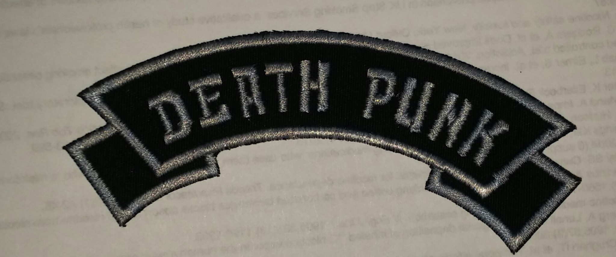 Measuring in at 10cm by 2cm wide, we have the new DEATH PUNK patch for y'all!!! Gimme gimme gimme...